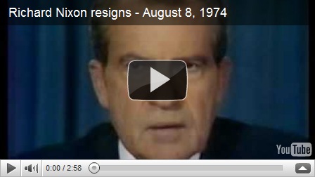 History 101: 1974: President Richard Nixon announced he would resign as of 12 noon the following day after new damaging revelations in the Watergate scandal.